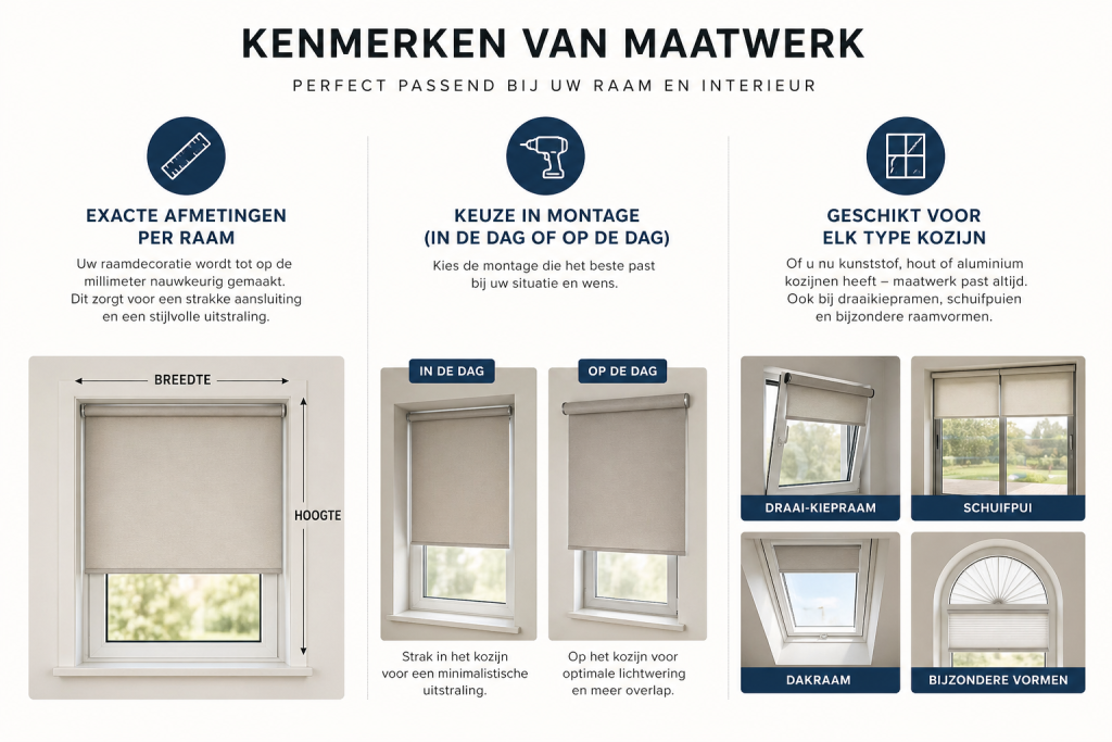 Onderstaand vindt u 8 duidelijke signalen waarmee u kwalitatieve rolgordijnen op maat kunt herkennen.