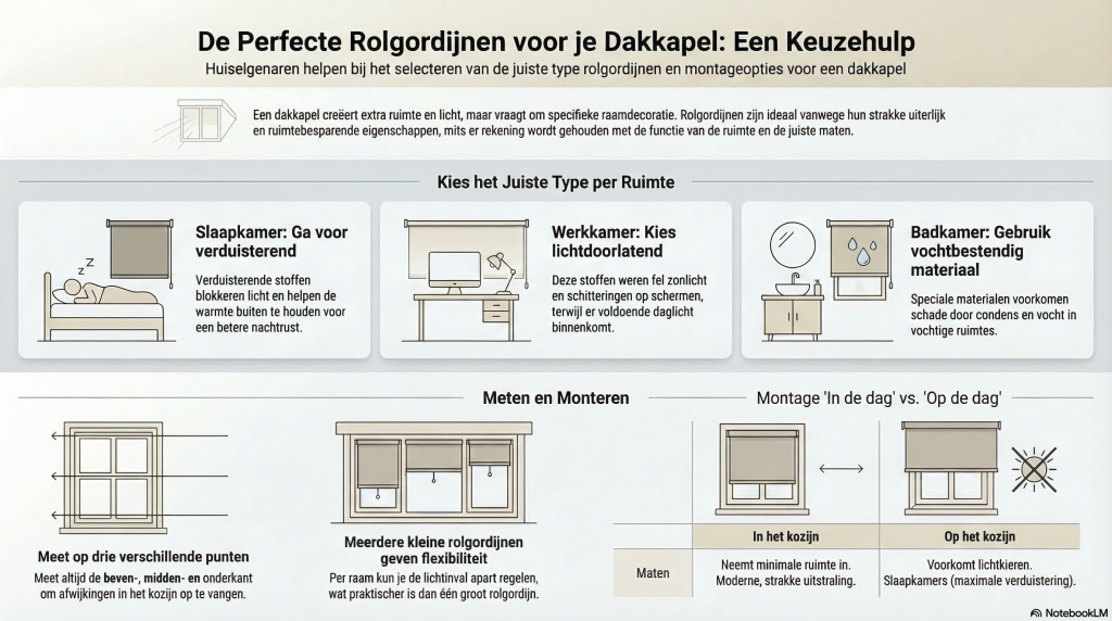 Bij het kiezen van rolgordijnen voor een dakkapel komt meer kijken dan je misschien denkt. Denk goed na over de functie van de ruimte, de gewenste lichtinval en de juiste afmetingen. Kies daarnaast een stijl die past bij je interieur en let op de montage en kwaliteit.