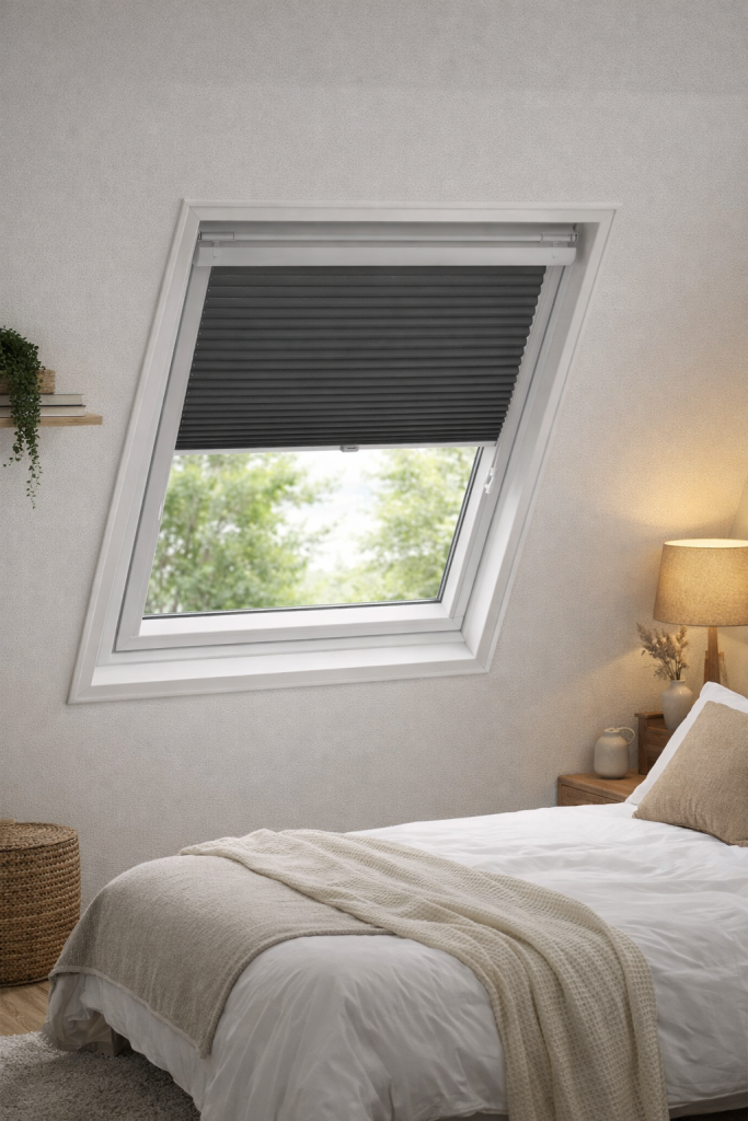 | Slaapkamer op zolder | Verduisterend top down plisségordijn | Optimale verduistering |